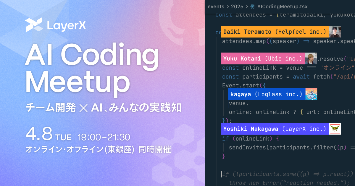 2025年4月8日開催された、「AI Coding Meetup #1 - チーム開発 ✕ AI、みんなの実践知」というイベントにオンライン参加してきました。